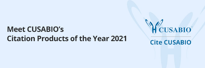 In 2021, CUSABIO product citations reached to 4500+ from 2790+ articles based on statistics from Google Scholar and PubMed, in which many have been published in the high impact factor (IF) journals, including Blood (23.629), Diabetes Care (19.112), Annals of the Rheumatic Diseases (19.103), Science Translational Medicine (17.956), Nucleic Acids Research ( 16.973), Advanced Science (16.806), Molecular Psychiatry (15.992), Nature Communications (14.913), etc. (As listed below). Here, we have selected the recommended products from the 2021 product citations data. Come and join us to see what are there?