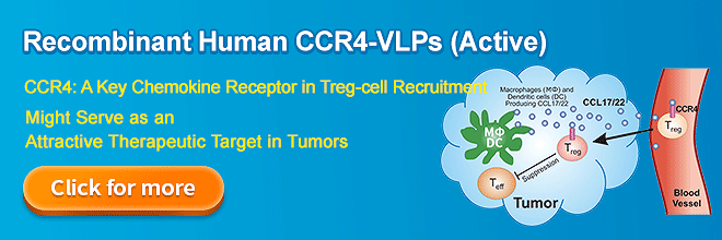 CCR4, also known as CD194, belongs to the G protein-coupled receptor family. CCR4 consists of a polypeptide chain with a 7subtransmembrane structural domain. It contains 360 amino acids with a 41kD molecular weight. As an important chemokine receptor, CCR4 binds to the high-affinity ligands (CCCL17 and CCL22) to perform its function in human autoimmune diseases, such as atopic dermatitis (AD), asthma, and cutaneous T-cell lymphoma (CTCL). CCR4 as an attractive therapeutic target, there existed one FDA approval CCR4 antagonist for hematologic T-cell lymphoma treatment. Beyond this, several studies in recent years have shown that CCR4 also play key roles in different solid tumors. (Recommend Reading CCR4 Article)