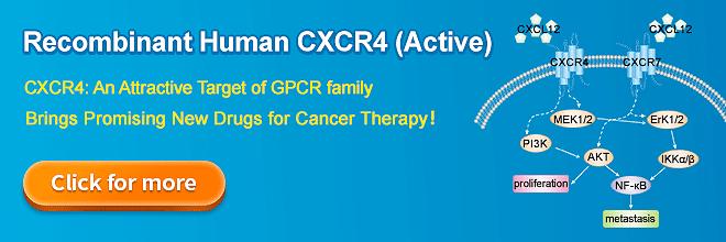 To fully serve pharmaceutical companies in their CXCR4 based drug research for tumors, hematopoietic stem cell mobilization, HIV, autoimmune diseases, etc., CUSABIO has launched CXCR4 active protein product (Code: CSB-MP006254HU(F1)) to help your research on CXCR4 mechanism or its potential clinical applications.