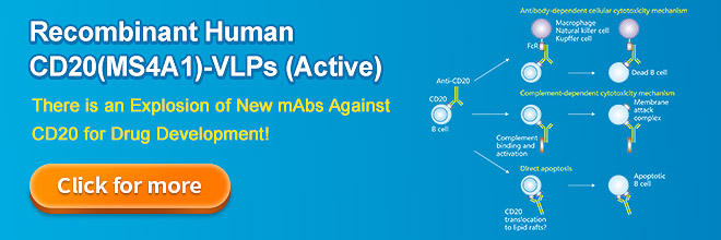 To fully support researchers and pharmaceutical companies in their research on CD20 for the treatment of lymphoma, leukemia, autoimmune diseases, CUSABIO boasts CD20 active protein products (Code: CSB-MP015007HU) to assist you in your research on the mechanism of CD20 or its potential clinical value (Click to see a broad range of CD20-based products: Proteins; Antibodies; ELISAs).